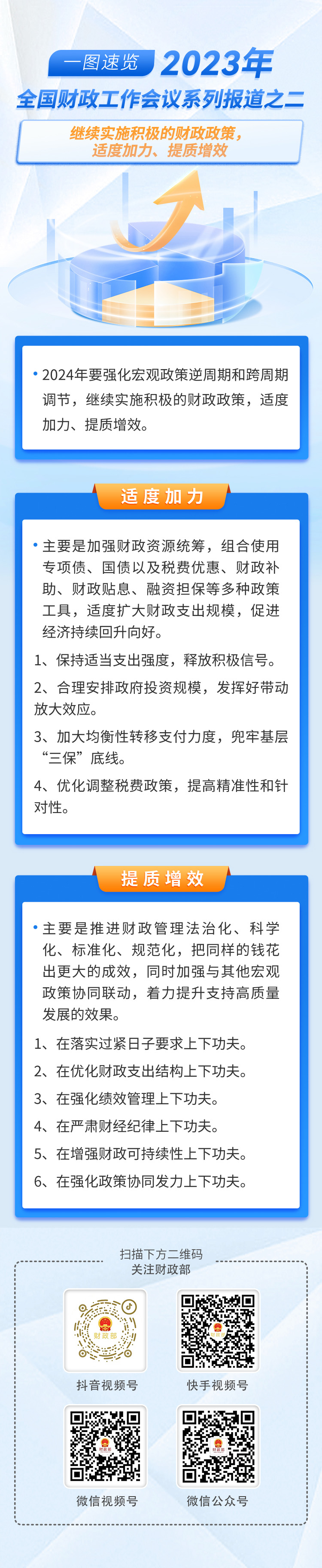 一图速览2023年全国财政工作会议系列报道之二继续实施积极的财政政策,适度加力、提质增效