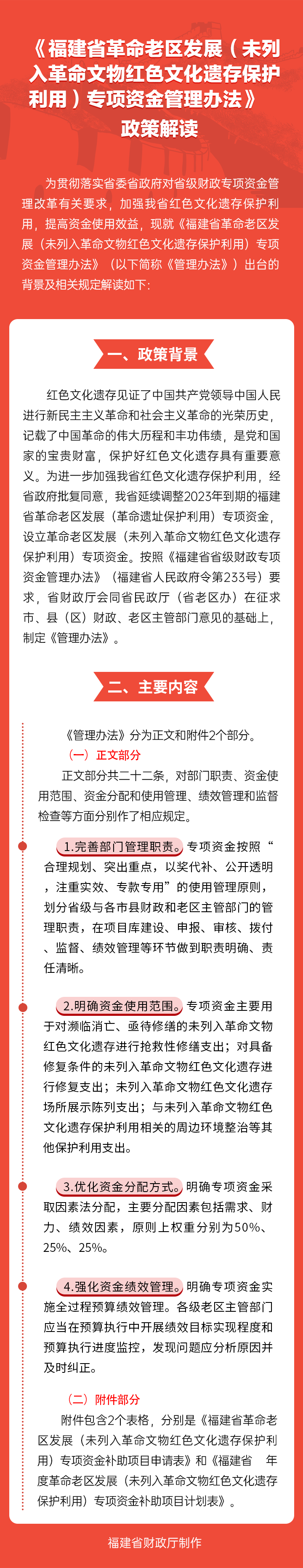 图解:《福建省革命老区发展(未列入革命文物红色文化遗存保护利用)专项资金管理办法》