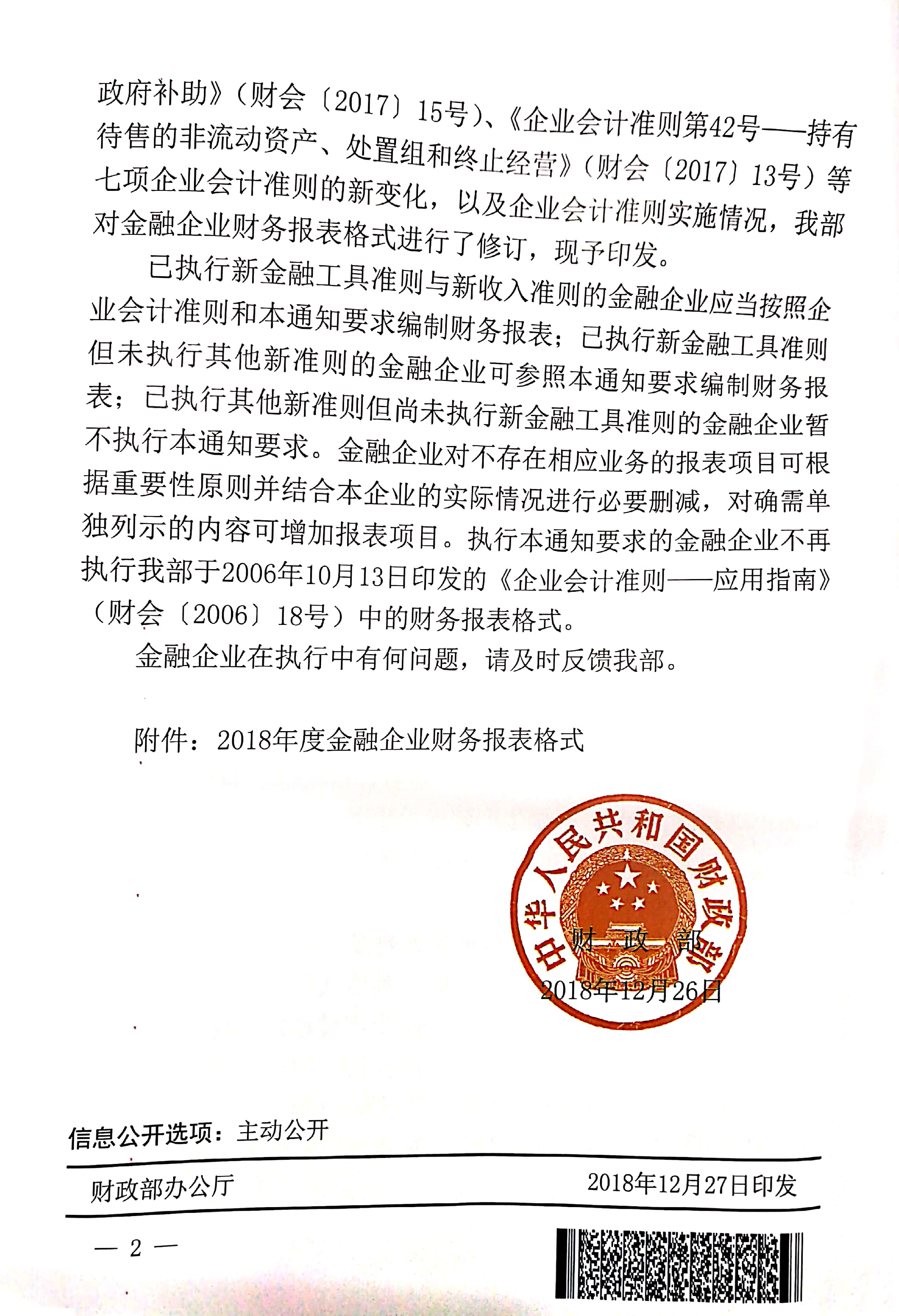 财政部关于修订印发2018年度金融企业财务报表格式的通知