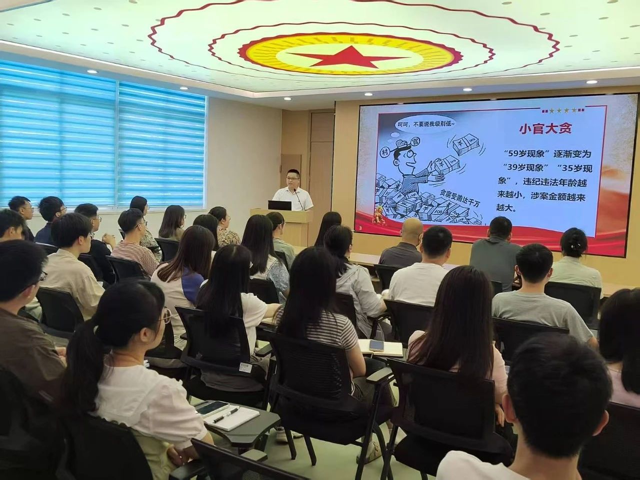 同时,组织全体干部集中观看警示教育片《持续发力纵深推进—强化正风肃纪》。警示片通过案例纪实、剖析点评等方式,揭示违纪违法人员的思想根源,为全体党员干部敲响警钟。