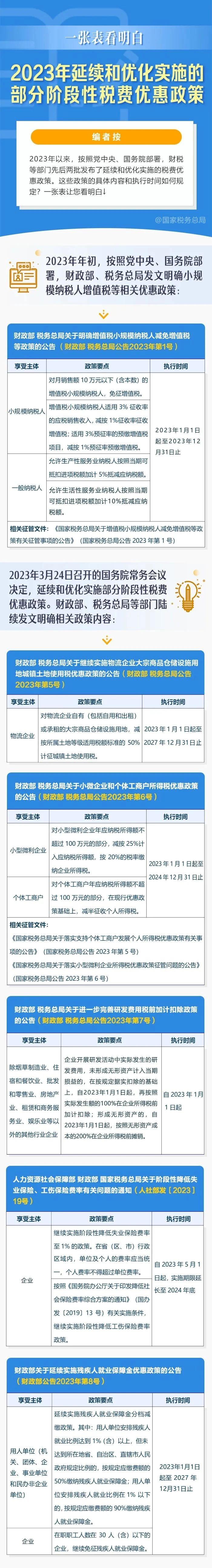 一张表看明白:2023年延续和优化实施的部分阶段性税费优惠政策