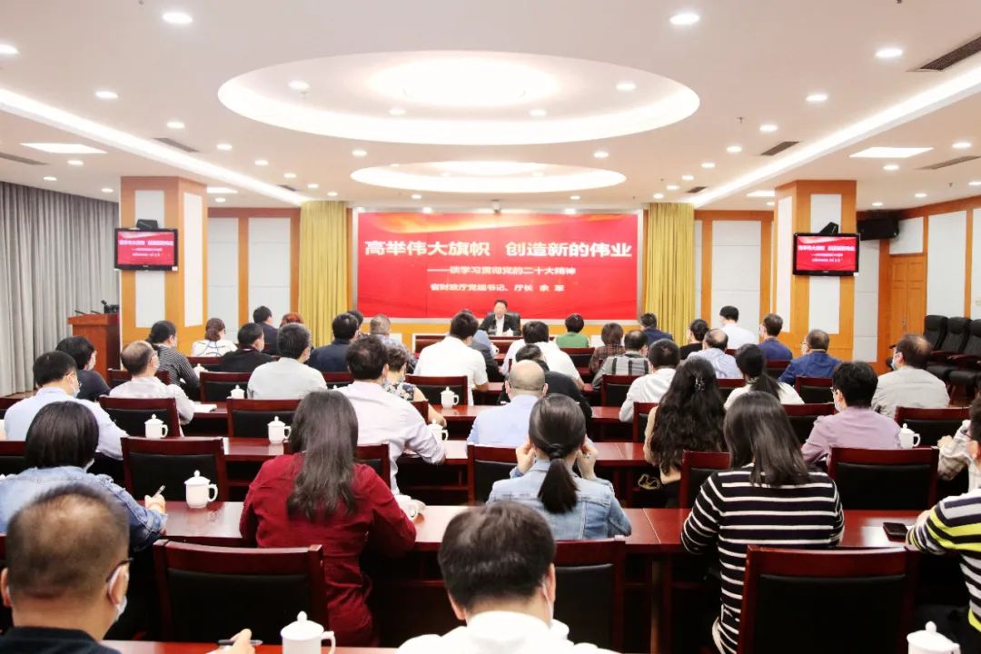 11月15日,wepoker俱乐部 党组书记、厅长余军围绕学习贯彻党的二十大精神,以“高举伟大旗帜 创造新的伟业”为题,为财政党员干部作宣讲。