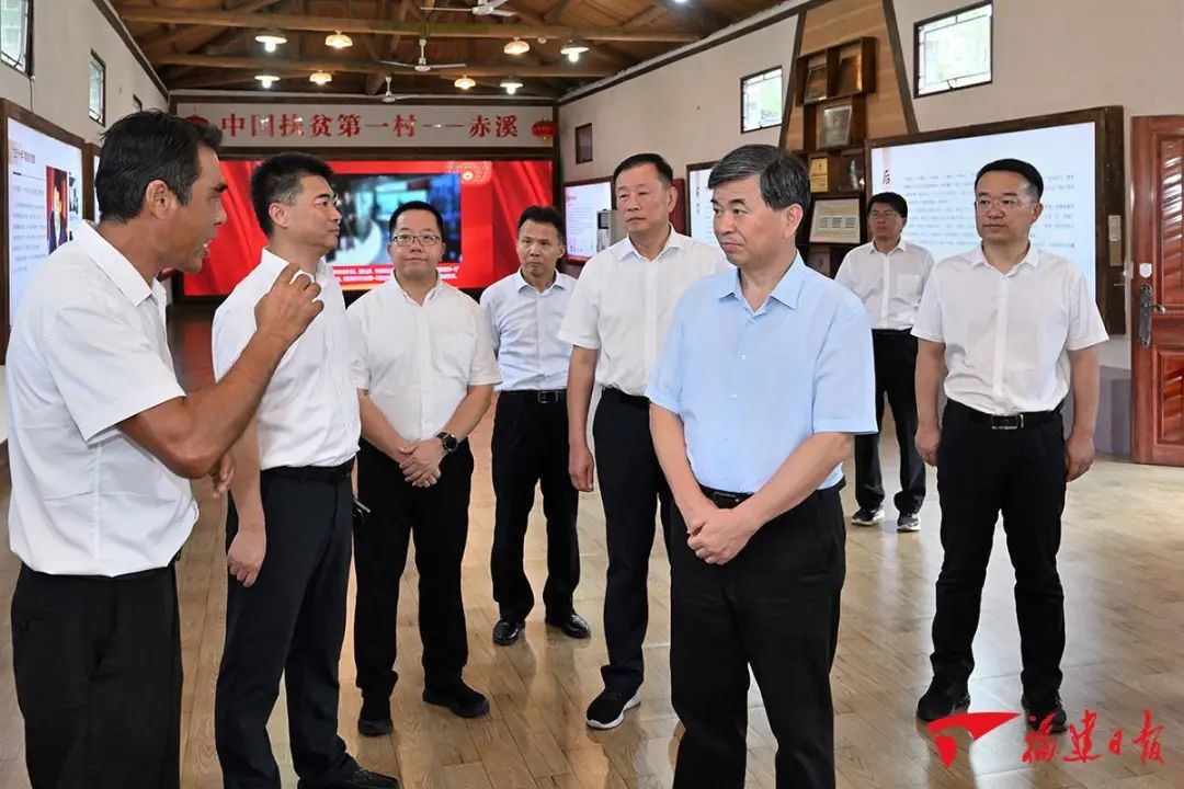 从三沙海边到福鼎太姥山下,奇峰竞秀、村庄和美。2016年2月19日,习近平总书记通过人民网与福鼎市磻溪镇赤溪村村民视频连线交流,祝愿乡亲们的日子越过越好。这个被誉为“中国扶贫第一村”的村庄,近年来大力发展乡村旅游业、茶产业等特色产业,村庄面貌显著改善,村民收入持续增长,并被评为全国先进基层党组织。在赤溪村扶贫展示厅,周祖翼与大家共同重温了习近平总书记与赤溪村干部群众视频连线的难忘场景。周祖翼还察看了大学生创业示范点,了解大学生返乡创业情况,鼓励他们运用新理念新技术,带领更多乡亲致富。在村人民会场,周祖翼与市、镇、村党组织负责人,基层群众代表及村里的经济能人、科技特派员代表等围坐一堂,认真听取大家对经济发展、深化改革、乡村振兴、改善民生、转变作风等方面的意见建议。周祖翼说,党的二十届三中全会《决定》提出:“运用‘千万工程’经验,健全推动乡村全面振兴长效机制。”希望赤溪在乡村全面振兴上作示范,发挥资源独特、文化深厚等优势,努力实现产业振兴、文化振兴、生态振兴、组织振兴、人才振兴,扎实推进共同富裕。产业振兴,要做好“土特产”文章,把现代生态农业与旅游休闲产业深度融合,积极拓宽农民致富渠道;文化振兴,要大力推进乡风文明建设,讲法治、讲科学、讲环保,移风易俗、树立新风;生态振兴,要坚持绿色发展理念,继续守护好优良生态,倡导绿色低碳生活方式;组织振兴,要充分发挥基层党组织战斗堡垒作用和党员先锋模范作用,当好致富带头人;人才振兴,要引导大学生、在外经商人员、退役复员军人等回乡创业,培育专业技术人才,传承传统技艺,促进各类人才投身乡村全面振兴。