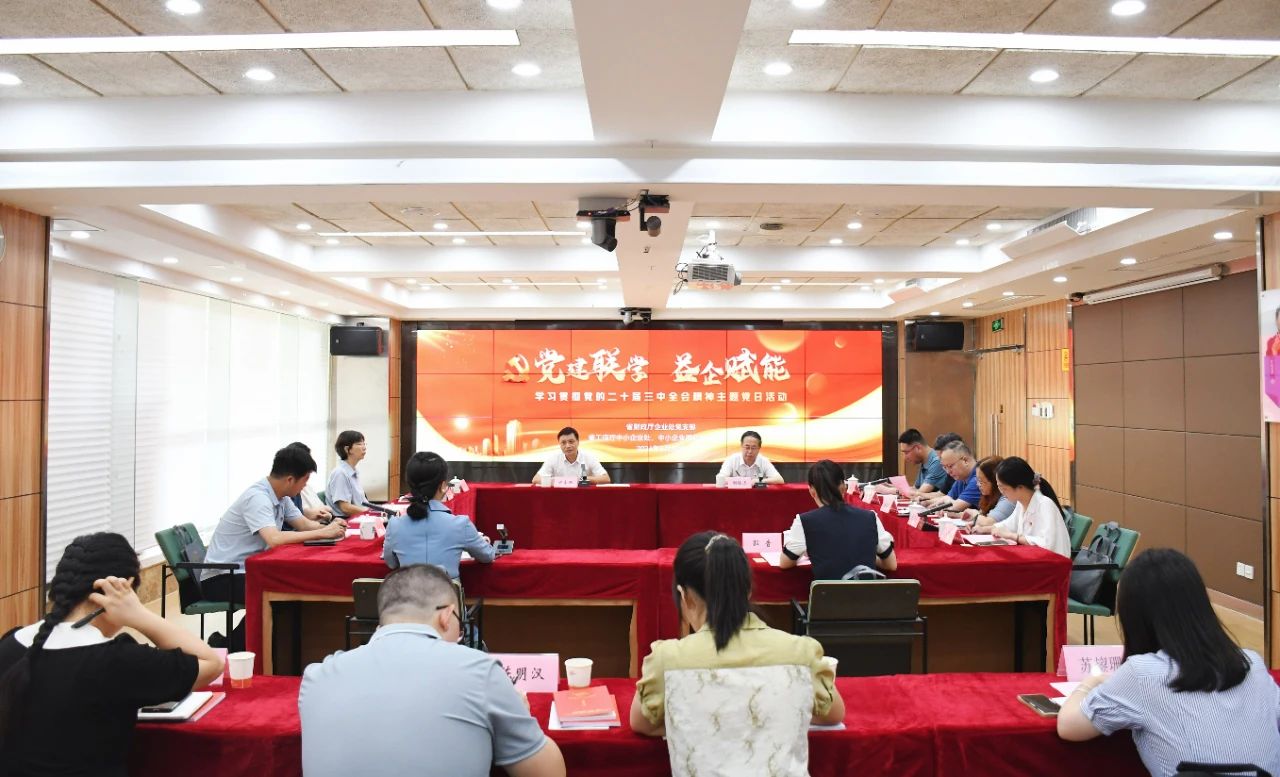 8月30日,wepoker俱乐部 企业处党支部与省工信厅中小企业处、中小企业服务中心党支部,在省中小企业服务中心组织一场主题党日活动。党员结合实际,深入学习党的二十届三中全会和省委十一届六中全会精神,集中围绕合力推进新型工业化、促进中小企业发展进行交流研讨、共谋对策。