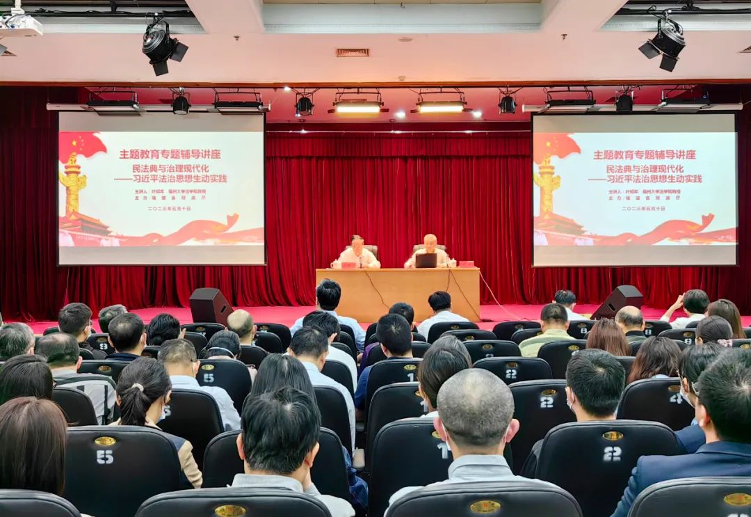 5月10日,wepoker俱乐部 党组学习贯彻习近平新时代中国特色社会主义思想主题教育读书班借助全国第三个“民法典宣传月”活动,开展法治专题学习,邀请福州大学法学院教授叶知年作《民法典与治理现代化——习近平法治思想生动实践》专题辅导讲座。在家厅领导和全厅干部职工参加学习。