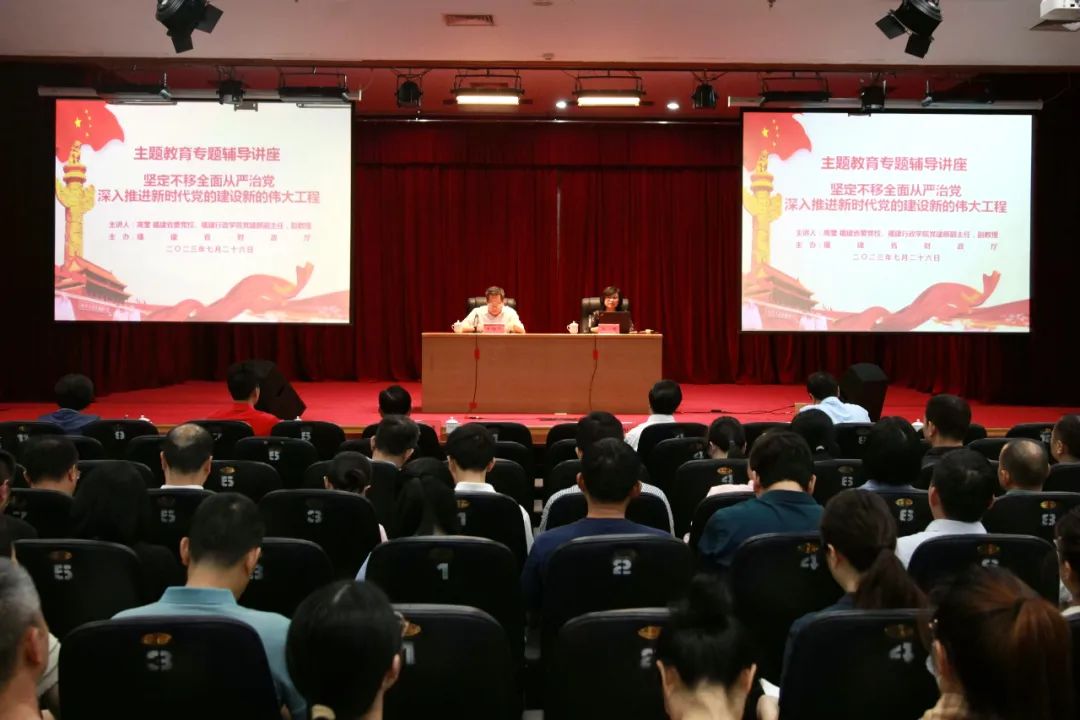 7月26日,wepoker俱乐部 党组主题教育第四次读书班邀请省委党校、福建行政学院党建部副主任高莹作题为“坚定不移全面从严治党,深入推进新时代党的建设新的伟大工程”的专题辅导,在家厅领导、全厅党员干部参加。