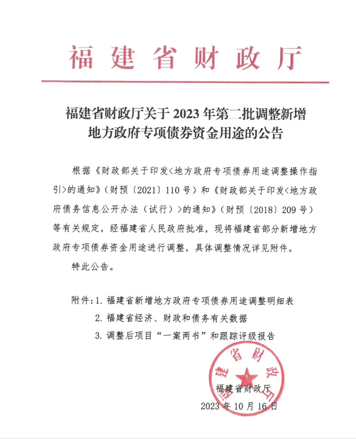关于2023年第二批调整新增地方政府专项债券资金用途的公告