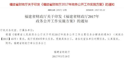 二是加强指导。加强对市县政务公开工作的督促,对公开内容采取分类指导的办法,分专项下发文件,明确公开主体、公开内容和公开时限,要求各市县按照部署,全面推进本地区政务公开工作。如在预决算公开方面,多次下发文件,要求各市县按照总体部署、分步推进的原则,稳步推进本地区预决算公开。制定出台《福建省预决算公开操作规程》,规范预决算公开格式,统一预决算公开口径,设计预决算公开模板,提供市县财政部门和省级部门参考。要求县级以上财政部门从2017年起要建立预决算公开统一平台,将本级政府预决算、部门预决算在平台(或专栏)上集中公开。
