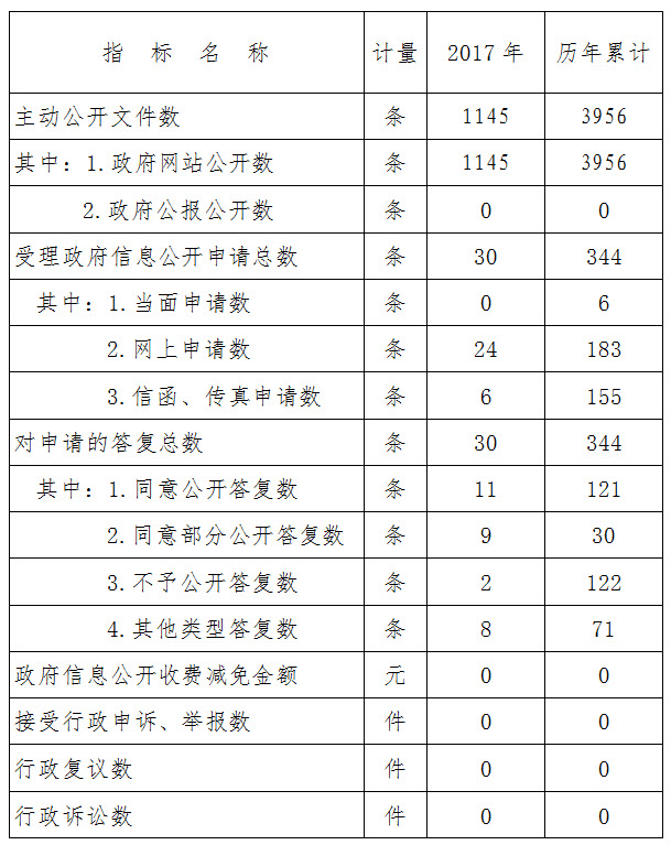 三、2017年政府信息主动公开和依申请公开情况
